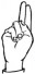 На ћирилици написано ПЕТАР УЗУНОВИЋ састоји се из 13 слова [?]. Исписано ћириличном једноручном азбуком за глувонеме: